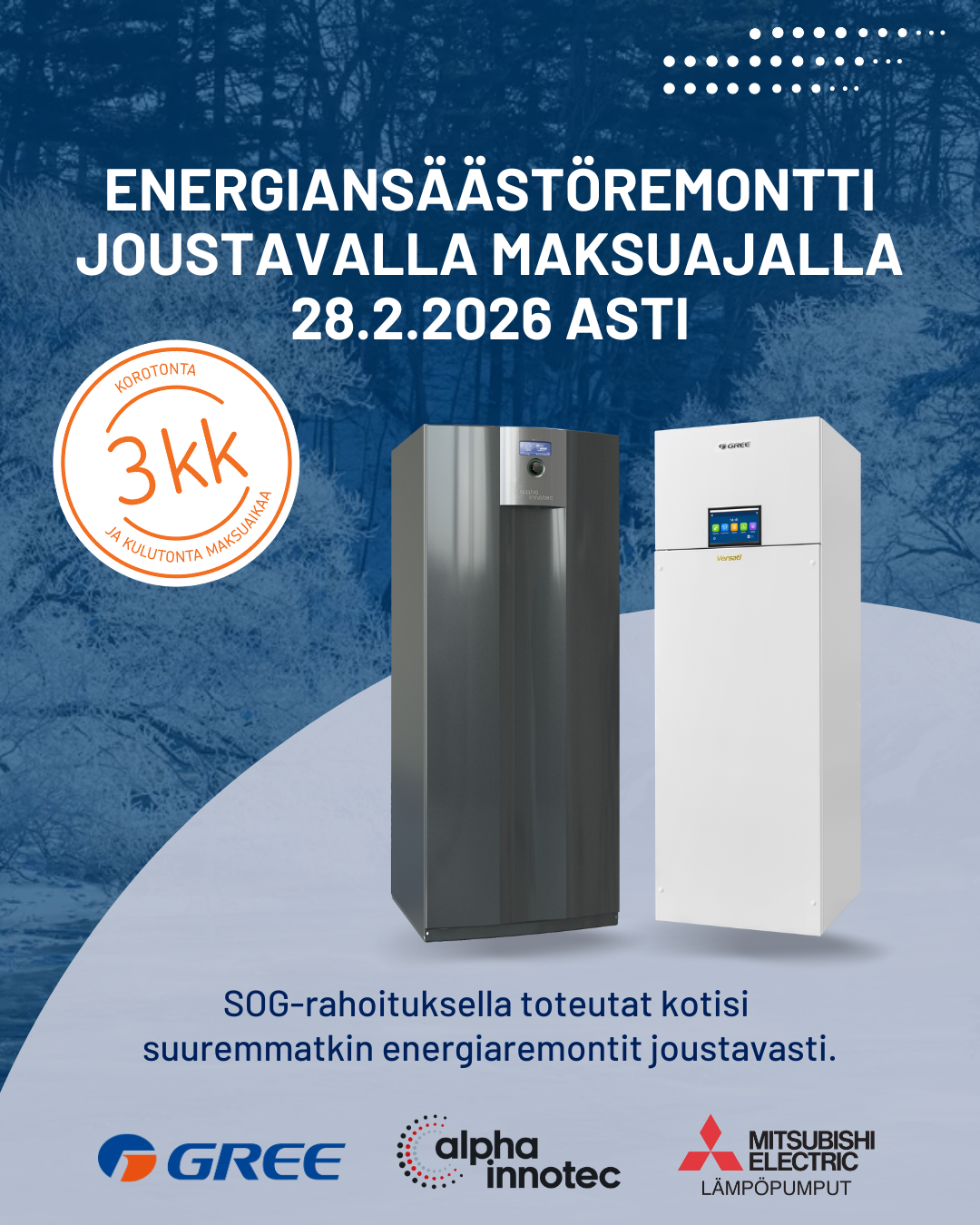 Joustava maksuaikatarjous 16.12.2025 - 28.2.2026 - siirrä eräpäivää joka 3 kuukautta ilman korkoja ja kuluja!